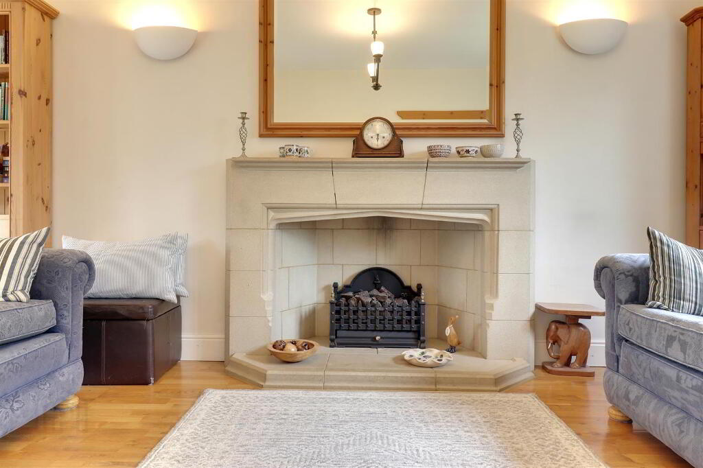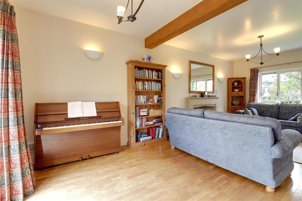 Real wood flooring. Patio doors to rear garden. Feature stine fireplace & hearth (gas fire disconnected). Wall lights & feature ceiling beams.