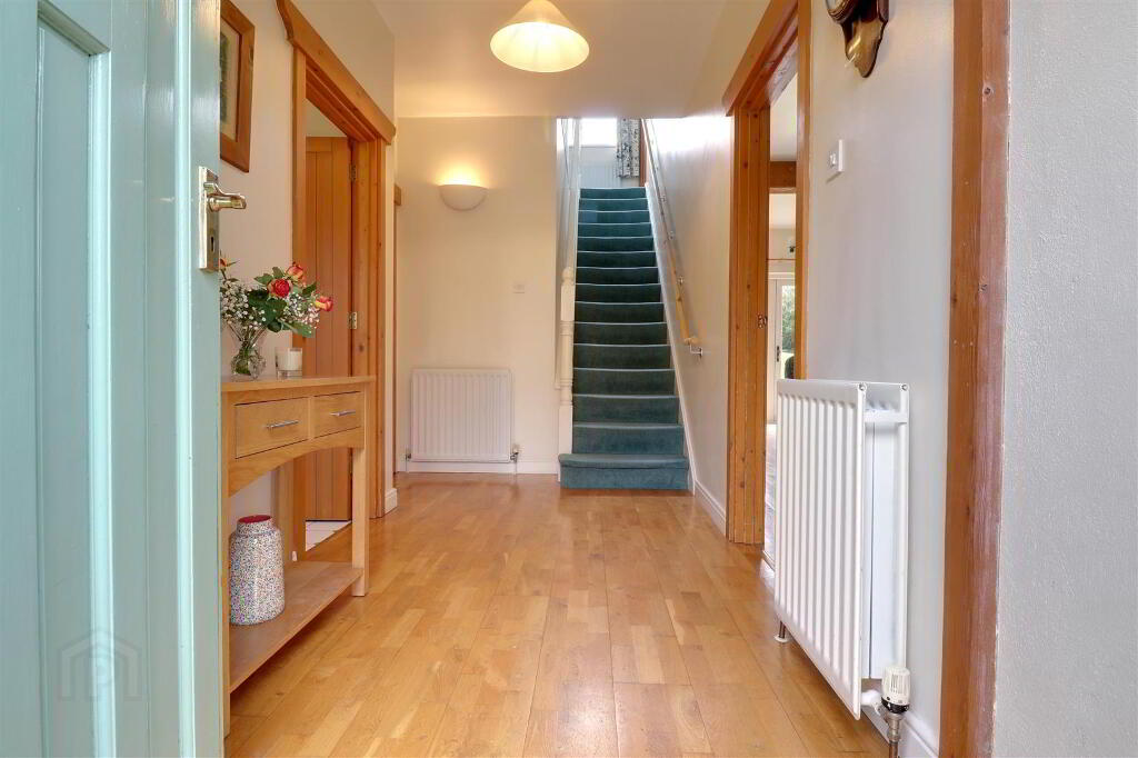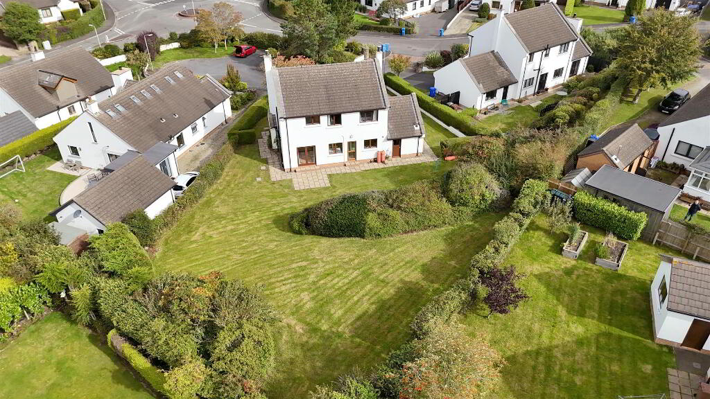 Generous gardens to front, side & rear in lawn with pebbled driveway, paved patio, mature shrubs and trees.