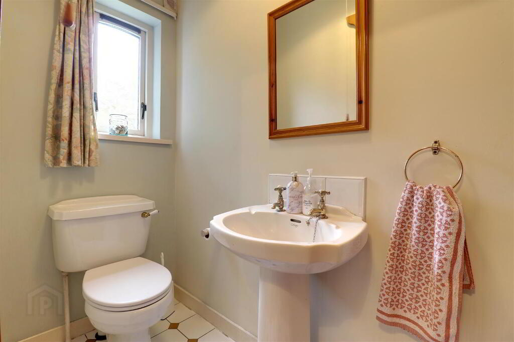 At widest points. White suite comprising Roll top, Claw foot bath, WC & wash hand basin. Tiled floor and part tiled walls. Extractor fan.