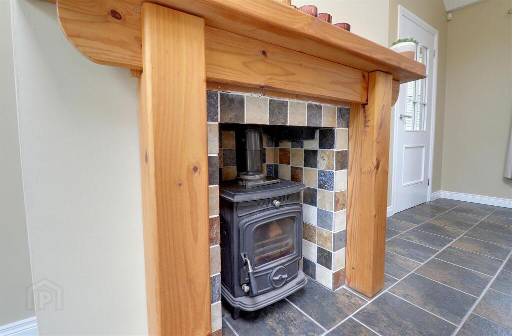 Real wood flooring. Feature multi fuel stove with brick surround, tiled hearth and wooden mantel. uPVC double glazed patio doors to side garden.