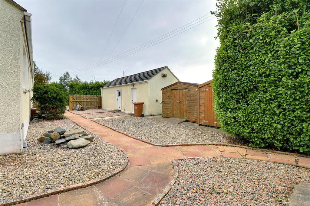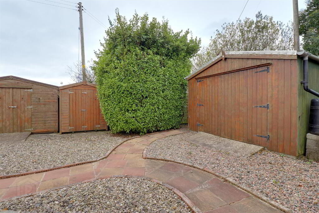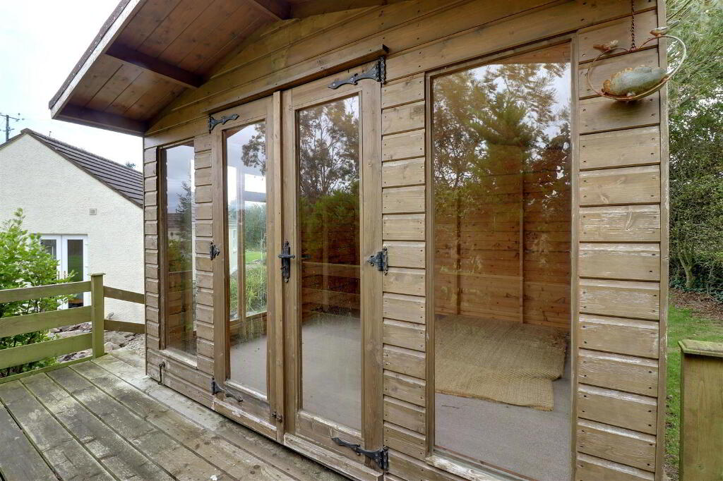 Two wooden sheds of 9'10 x 7'9 and 6x6. Summer house. Extensive gardens to front, side and rear in lawn with mature shrubs, vegetable garden, pebbled driveway and parking area. Paved patio to rear with pebbled pathways. Raised deck area. External power points.