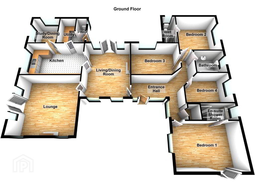 "Escape to the country..." Set on a generous site of over 0.5 acres and approached by a private pebbled drive with ranch style gates, this modern detached bungalow is everything the discerning buyer could need - there's nothing pretentious or showy about this property just practical and spacious accommodation in an idyllic rural setting with lots of little extra touches to charm the fortunate buyer. The property offers 4 bedrooms (3 doubles) including two with ensuite shower/wetrooms and a family bathroom with "Whirlpool bath. The living accommodation is versatile and centres around the living/dining room, with its vaulted ceiling, patio doors and multi fuel stove. From here you can access both the spacious lounge, with real wood flooring, patio doors and a larger multi fuel stove. The modern kitchen is charming and offers plenty of storage space plus access to an additional TV room/study or dining room, as required, plus a separate utility and cloakroom to the rear. It benefits from oil fired underfloor heating with separate living & bedroom zones and room thermostats, uPVC double glazing and fascias plus an alarm system. Outside there is a detached garage and "Bar" plus 3 additional wooden sheds/workshops, a charming Summer House, paved patios and deck area adjoining the master bedroom. "If you're in the market for an excellent bungalow in a beautiful rural setting, not far from the local beaches of the Ards Peninsula then what more could you want?"