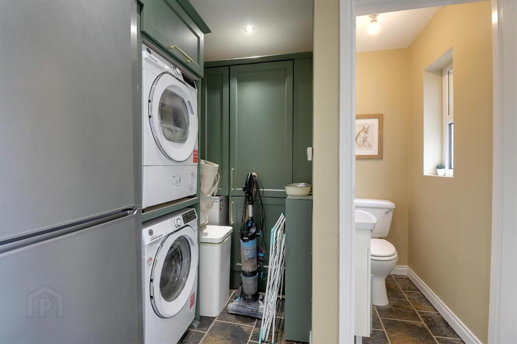 Tiled floor with underfloor heating. Part glazed door to living room. Hotpress/storage cupboard. Access to roofspace.