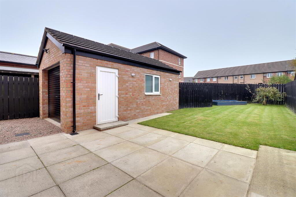 Gardens to front & rear in lawn with paved pathways. Brick paved parking area leading to enclosed, pebbled driveway. uPVC oil tank. Boiler house. Paved patio & raised bed.