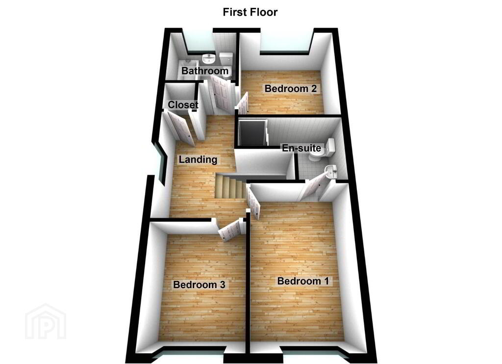 Spindle banister. Hot press. Access to floored roof space via slngsby ladder.