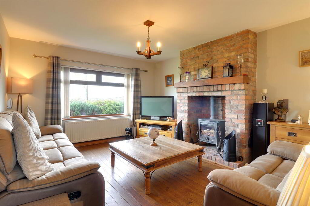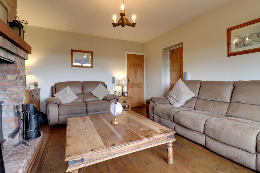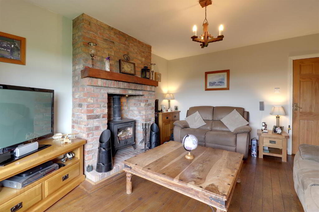 Polished wood flooring. Feature rustic brick fireplace with cast iron multi fuel stove & rustic wood mantle. Countryside views.