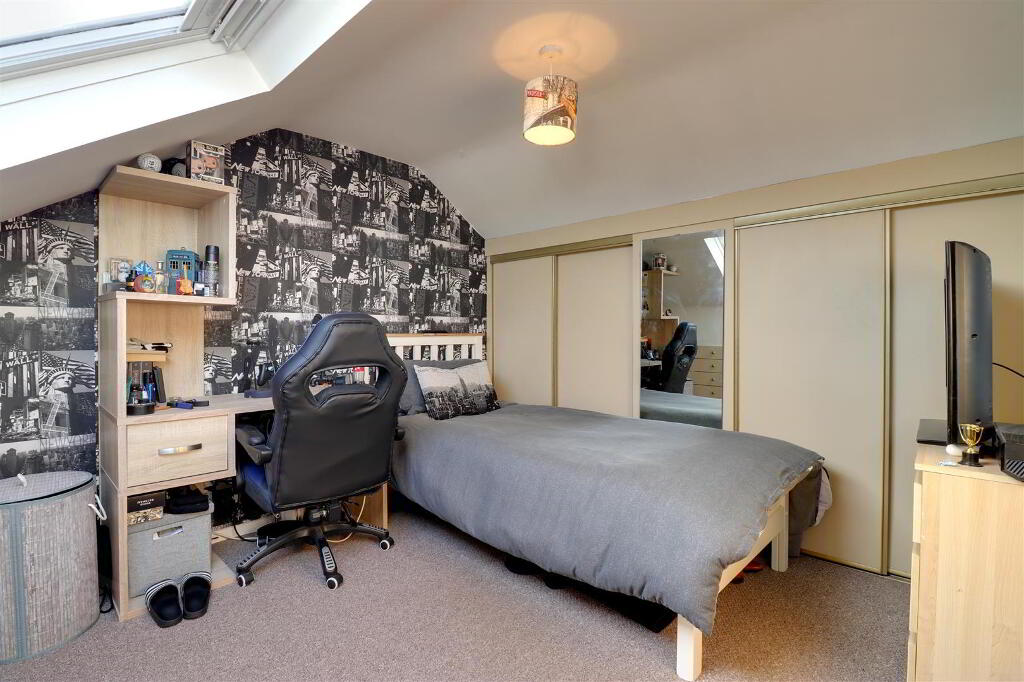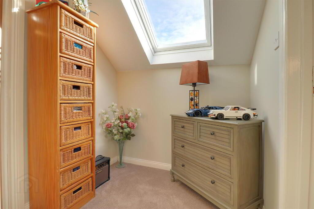 Spindle banister. Velux Window. Under eaves storage area. Sea views.