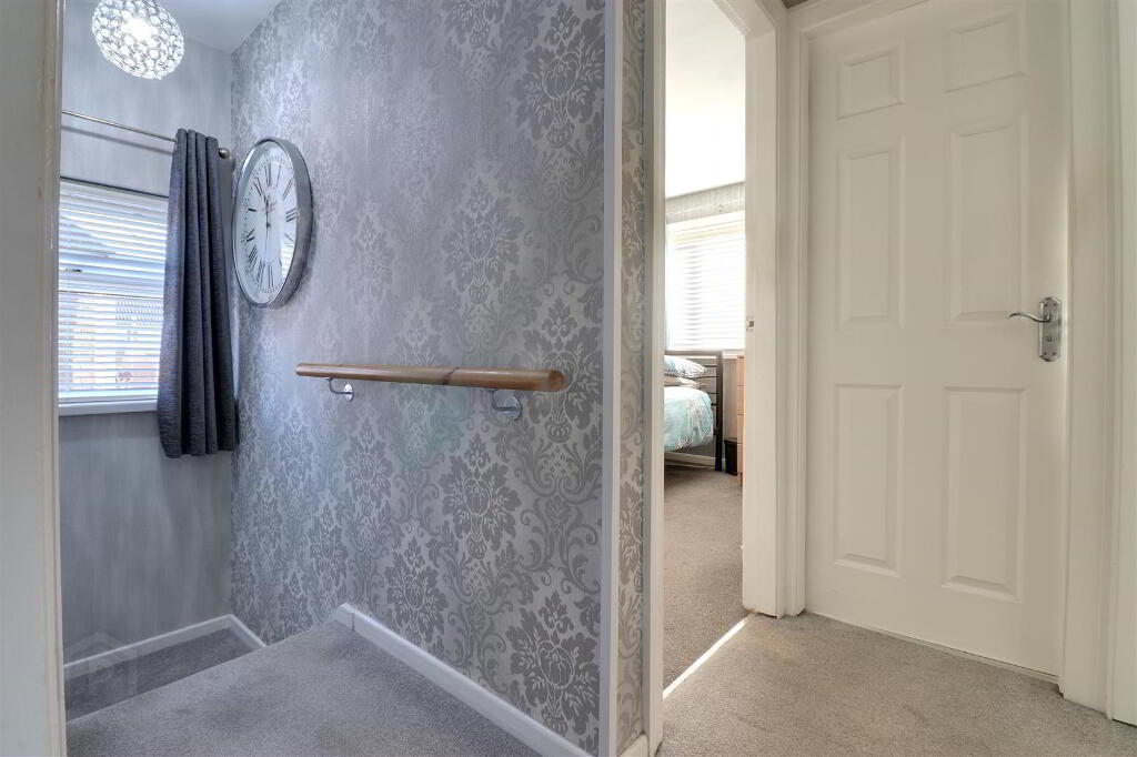 Real wood flooring. Spindle staircase to first floor landing. Feature wall radiator. 1/2 glazed Oak door to lounge.