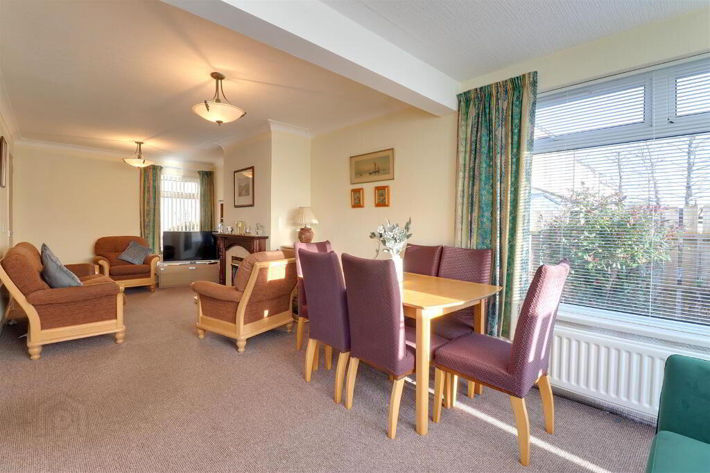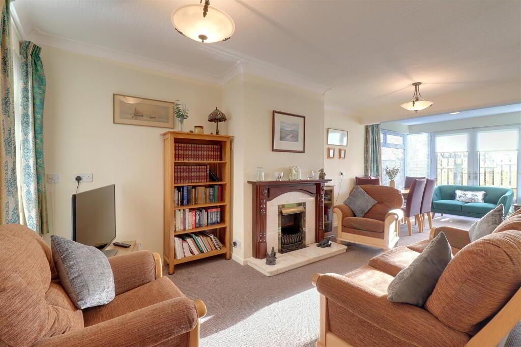 Marble fireplace with mahogany surround. Open plan to sunroom. Cornice ceiling.