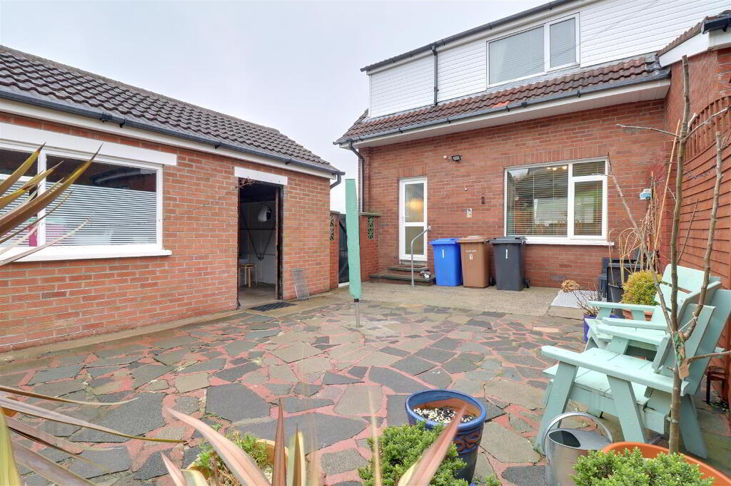 Enclosed paved rear garden plus garden to front