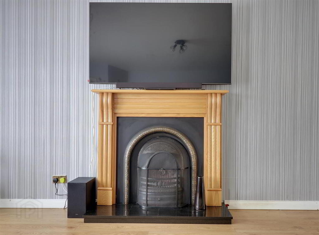 At widest points. Wood effect laminate flooring. Feature fireplace with Oak mantle, granite hearth and cast iron inset. Under stairs storage cupboard. French doors to kitchen/diner.