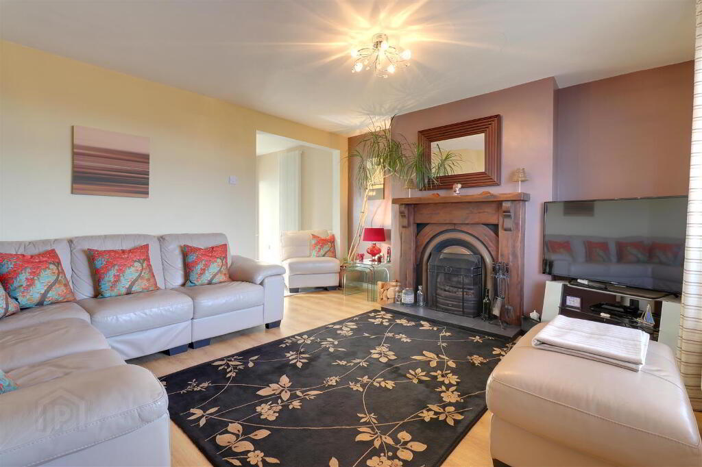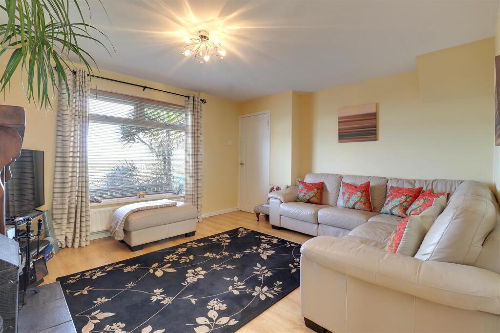 At widest points. Cast iron fireplace with wooden surround and tiled hearth. Wood effect laminate flooring. Seaviews. Open to kitchen/diner.