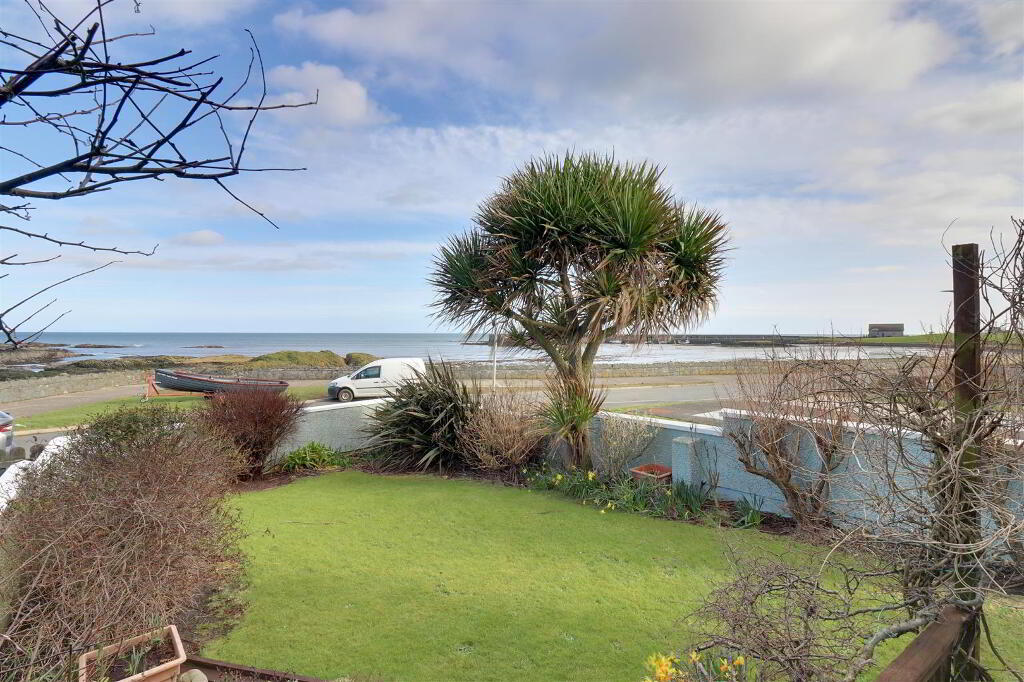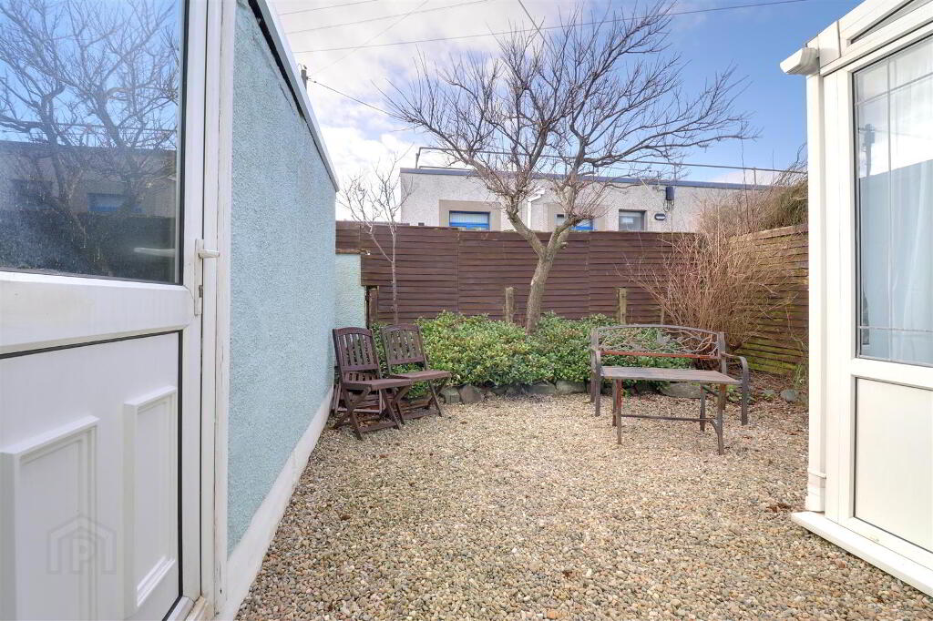 Front garden laid in lawn with paved patio area and mature shrubs with sea views. Enclosed to rear with pebbled area and mature shrubs. Birck Shed. uPVC oil tank. Oil fired boiler.