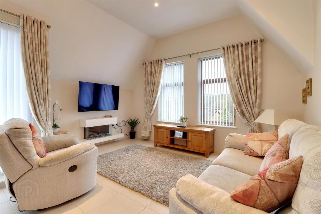 Set just off the Belfast Road and close to Kiltonga Wildlife Centre these stunning luxury apartments are in high demand from discerning buyers. This particular property is a second floor "penthouse apartment" with the "tower" that offers additional space in the kitchen and lovely 180 degree views. The property is presented to an excellent standard throughout and centres around a spacious open plan kitchen/lounge/dining area with semi vaulted ceiling, luxury kitchen with granite worktops and a modest balcony. Crossing the central hallway you'll find the master bedroom, with walk through storage area and ensuite shower room, a family bathroom, with double shower cubicle, and the second bedroom, currently utilised as a dressing room and home office. The property benefits from uPVC double glazing, Phoenix gas central heating and integrated sound system. For those who don't fancy the stairs there is a well maintained lift, allocated parking space and small communal garden with bins storage area outside. This isn't your average apartment so we recommend booking an appointment to see it for yourself and, whilst it may suit all ages, I could think of worse places in which to spend my retirement.