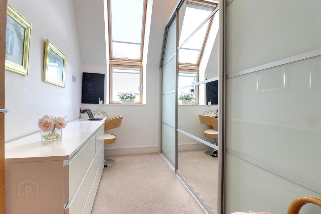 Semi vaulted ceiling. Recessed spotlights. Walk through wardrobe leading to ensuite shower room. Built in ceiling speakers.