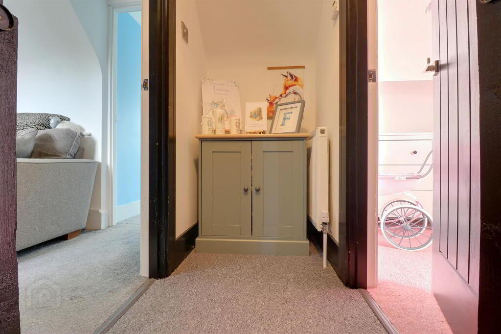 Storage cupboard. Stairs leading to first floor.