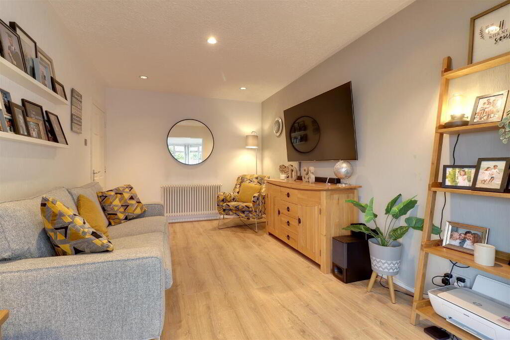At widest points. Range of high and low level white gloss kitchen units with Quartz work top, splash back and upstands. Inset stainless steel sink. Integrated oven, hob and extractor fan. Integrated dishwasher. Integrated fridge freezer. Feature radiator. Parquet style laminate floor. Recessed spotlights. uPVC double glazed door to driveway.