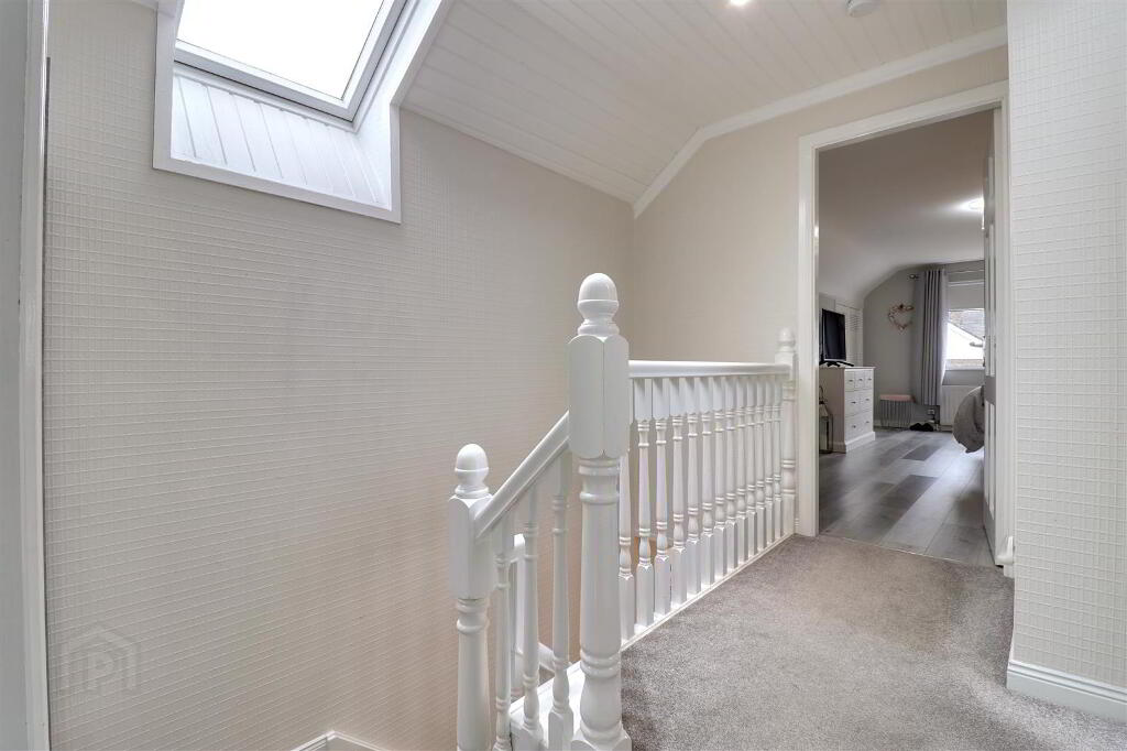 Low maintenance pebbled area to front with mature shrubs. Brick paved driveway and foot paths. Fully paved and enclosed rear garden with timber decking. uPVC oil tank.