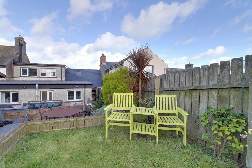 Public layby to front for parking. Garden to rear with right of way access for oil etc. Brick paved patio with summer house. Garden laid in lawn with fruit trees, mature shrubs and potting shed. Sea views.