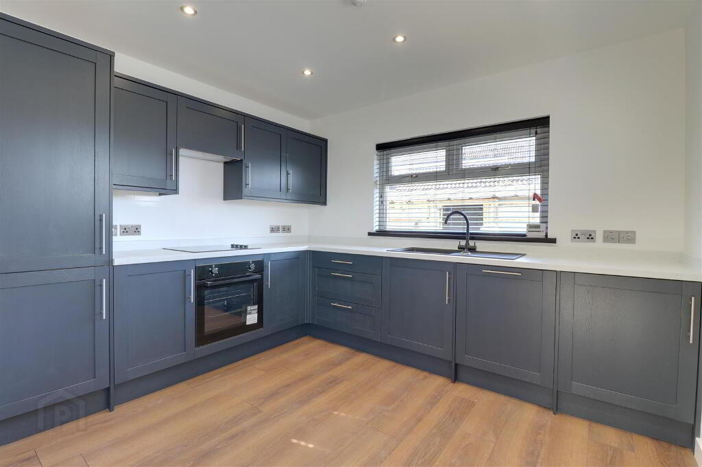 Range of 'Shaker' style kitchen units with marble effect work top. Composite sink with mixer tabs. Integrated oven hob and extractor fan. Integrated Fridge/freezer. Integrated dishwasher and washing machine. Wood effect laminate floor. Recessed spotlights.